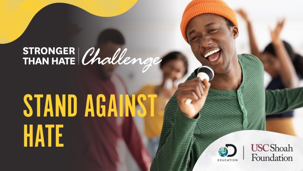 The Stronger Than Hate Challenge demonstrates the power of learning from the past and raising one’s voice to counter hate. The Challenge is presented by USC Shoah Foundation – The Institute for Visual History and Education (USC Shoah Foundation) and Discovery Education, the worldwide EdTech leader whose state-of-the-art digital platform supports learning wherever it takes place.